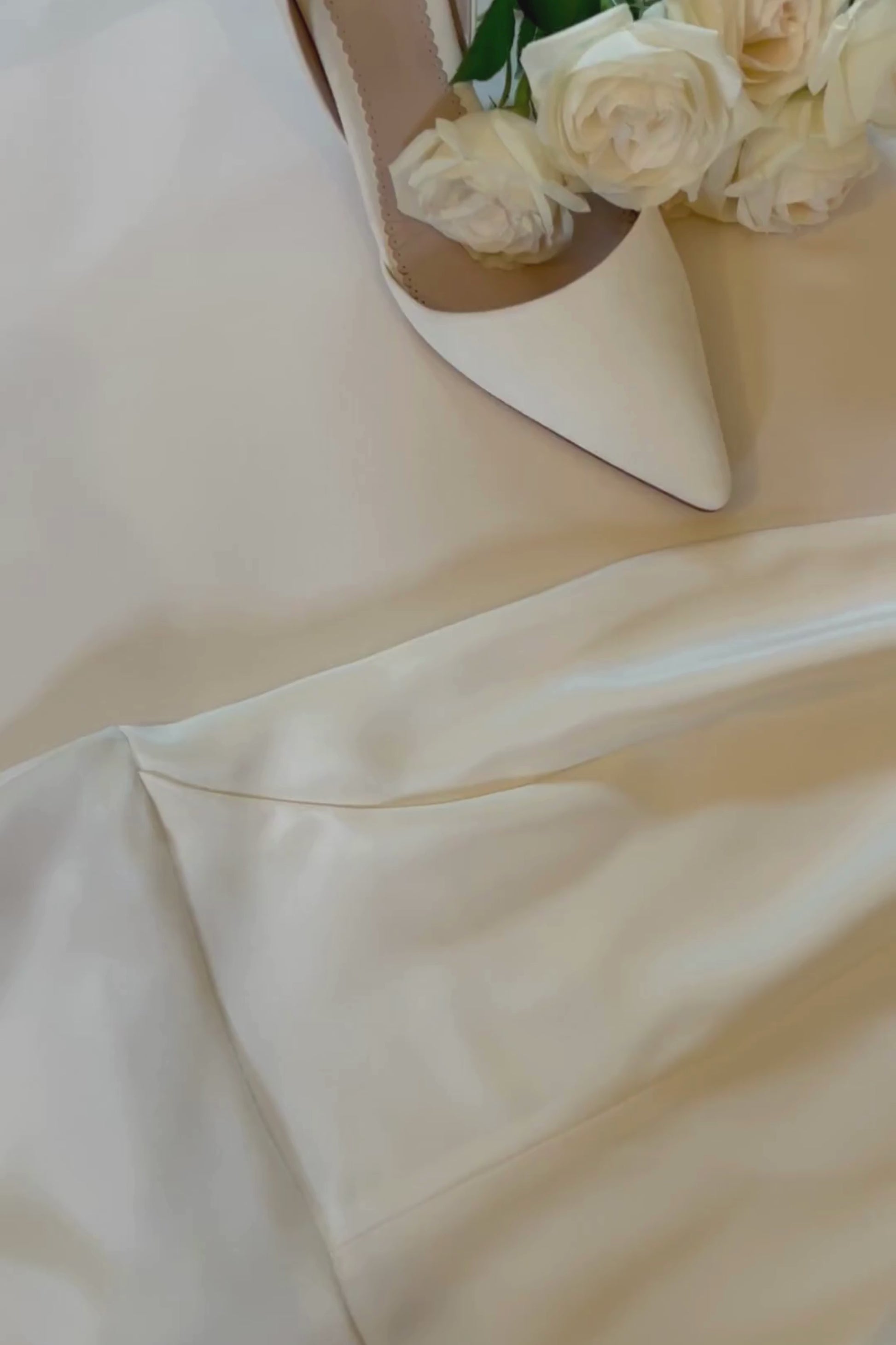 Made from 100% pure silk crepe marocain with pure silk satin lining. Featured in Light Ivory, my most popular bridal colour.